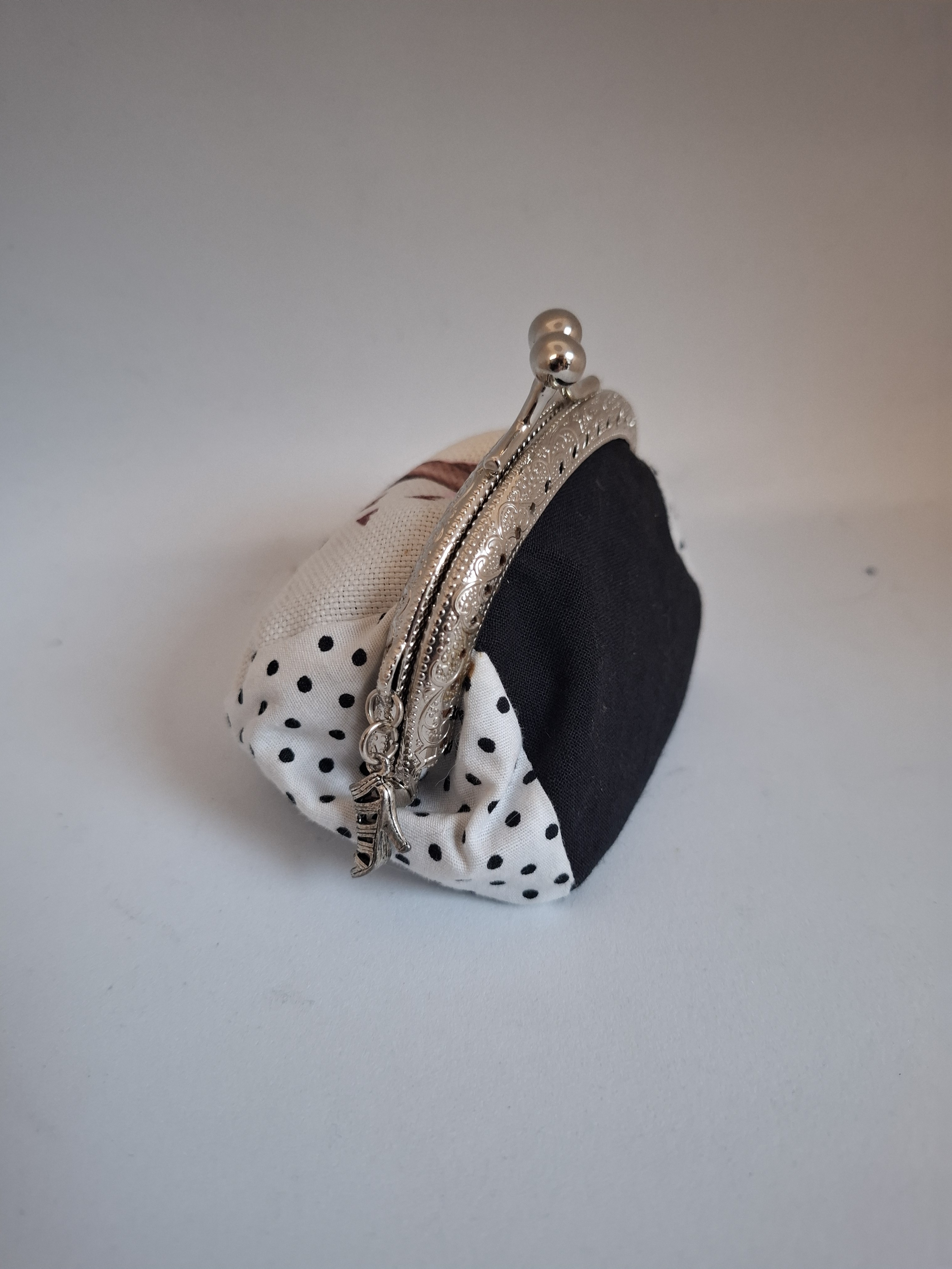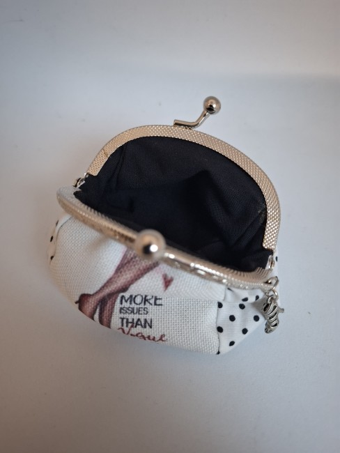 Ce petit porte‑monnaie au charme d’antan apporte une touche vintage irrésistible à votre quotidien. Son fermoir métallique argenté, orné d’une illustration tendance, lui donne un style délicieusement rétro.