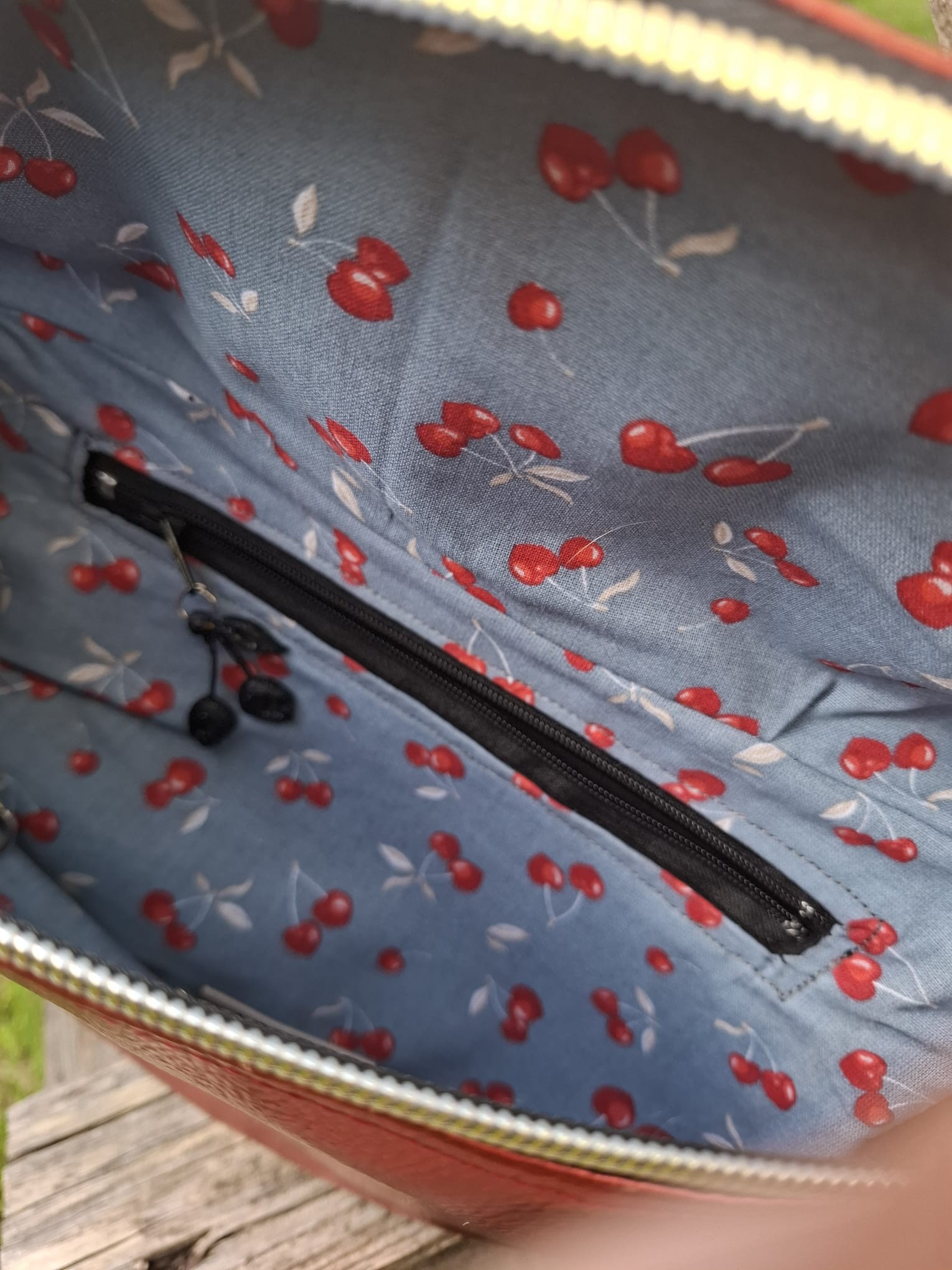 Doublure imprimée cerises : finition soignée et originale